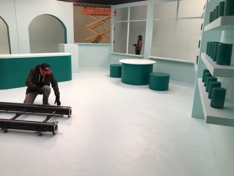 Ben Ralston, the Production Designer, designed this set for a social media Starbucks campaign. All elements were custom and this “impression” of a Starbucks was a fun one. We fabricated everything in the shop over the course of 3 days, trucked it all to a soundstage and had a day to install and do all the finish work.